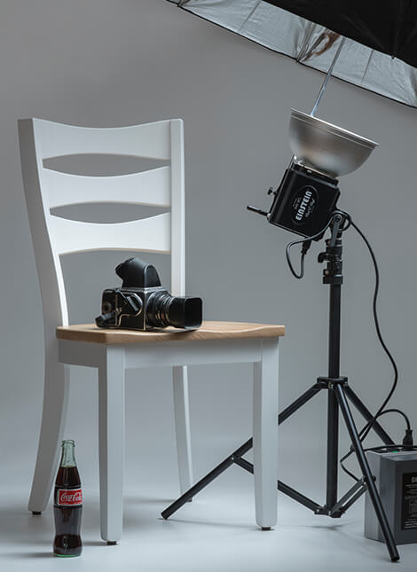 Equipamento de iluminação, fundos, styling e apoio técnico para quem precisa de um estúdio preparado para produção profissional.